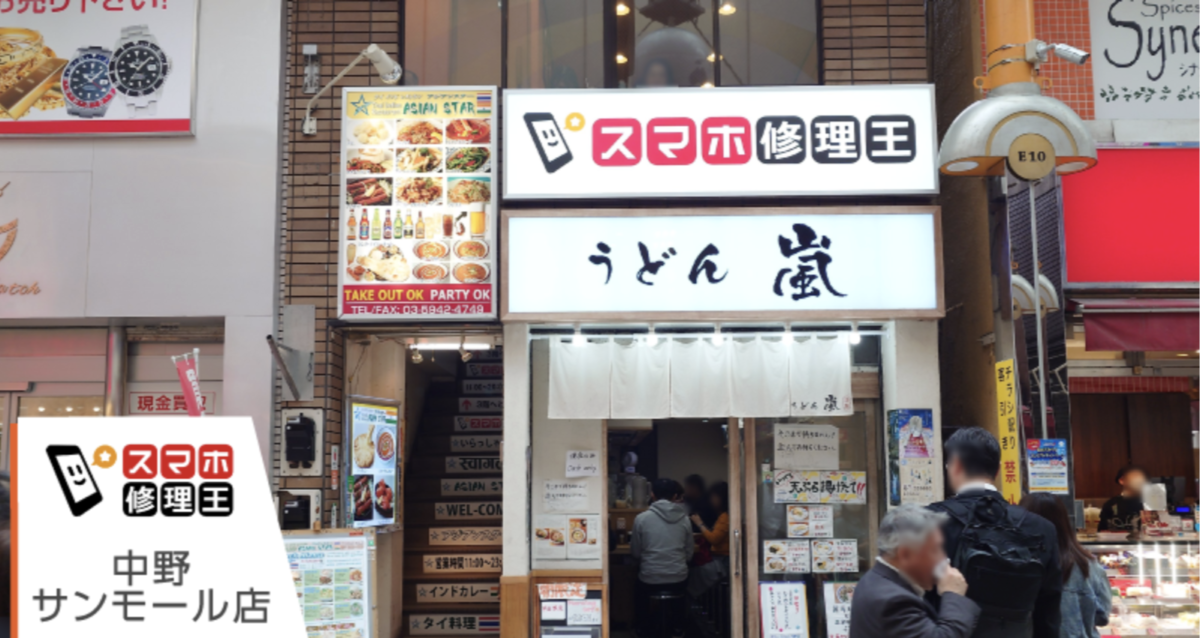 中野駅から徒歩2分、ハタノビル3階【スマホ修理王】内にあります。ご予約不要、駅チカのスマホコーティングマイスターにぜひお越しください。保護フィルムより快適。