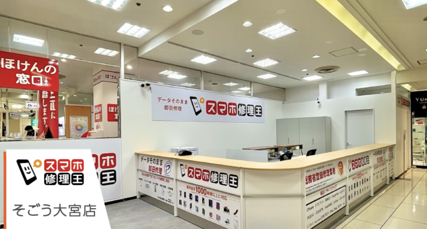 JR大宮駅から徒歩2分。ご予約不要。 そごう大宮店2階【スマホ修理王】内にて営業中。スマートフォンはガラスコーティングも、修理も当店にお任せください。保護フィルムより快適。